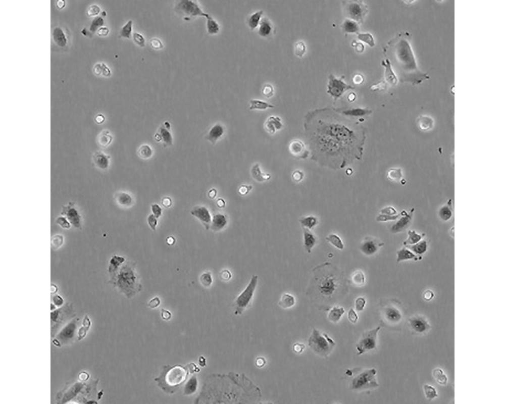 如果細(xì)胞密度達(dá)80%-90%,即可進(jìn)行傳代培養(yǎng)。1. 棄去培養(yǎng)上清,用不含鈣、鎂離子的PBS潤(rùn)洗細(xì)胞1-2次。2. 加2ml消化液(0.25%Trypsin-0.53mM EDTA)于培養(yǎng)瓶中,置于37℃培養(yǎng)箱中消化1-2分鐘,然后在顯微鏡下觀察細(xì)胞消化情況,若細(xì)胞大部分變圓并脫落,迅速拿回操作臺(tái),輕敲幾下培養(yǎng)瓶后加少量培養(yǎng)基終止消化。3. 按6-8ml/瓶補(bǔ)加培養(yǎng)基,輕輕打勻后吸出,在1000RPM條件下離心4分鐘,棄去上清液,補(bǔ)加1-2mL培養(yǎng)液后吹勻。4. 將細(xì)胞懸液按1:2到1:5的比例分到新的含8ml培養(yǎng)基的新皿中或者瓶中。 |