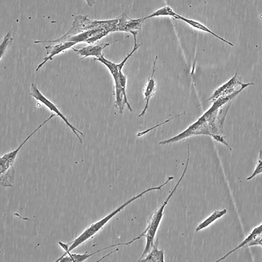 如果細胞密度達80%-90%,即可進行傳代培養。1. 棄去培養上清,用不含鈣、鎂離子的PBS潤洗細胞1-2次。2. 加2ml消化液(0.25%Trypsin-0.53mM EDTA)于培養瓶中,置于37℃培養箱中消化1-2分鐘,然后在顯微鏡下觀察細胞消化情況,若細胞大部分變圓并脫落,迅速拿回操作臺,輕敲幾下培養瓶后加少量培養基終止消化。3. 按6-8ml/瓶補加培養基,輕輕打勻后吸出,在1000RPM條件下離心4分鐘,棄去上清液,補加1-2mL培養液后吹勻。4. 將細胞懸液按1:2到1:5的比例分到新的含8ml培養基的新皿中或者瓶中。 |