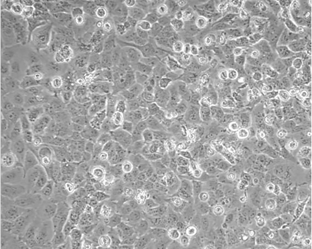 該細胞源于一位51歲患有非小細胞肺癌黑人男性患者的治療前的腫瘤組織,表達C-myc、L-myc、v-src、v-abl、v-erb B、c-raf 1、Ha-ras、Ki-ras、N-ras RNAs;該細胞攜帶K-ras 12突變;p53基因246位密碼子突變ATC→ATG;表達PDGF A和B鏈的異源mRNA;表達TGFα、TGFβ和EGFR;角蛋白 5、8和18陽性,波形蛋白陽性,神經絲蛋白陰性,左旋多巴脫氫酶陰性;據報道,在軟瓊脂中該細胞形成克隆的效率為9.7%。 |