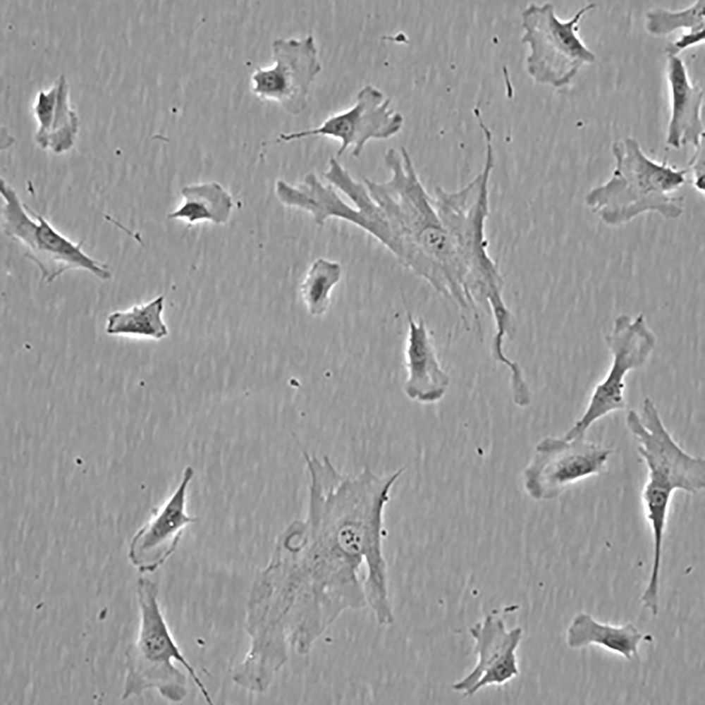 如果細胞密度達80%-90%,即可進行傳代培養。1. 棄去培養上清,用不含鈣、鎂離子的PBS潤洗細胞1-2次。2. 加2ml消化液(0.25%Trypsin-0.53mM EDTA)于培養瓶中,置于37℃培養箱中消化1-2分鐘,然后在顯微鏡下觀察細胞消化情況,若細胞大部分變圓并脫落,迅速拿回操作臺,輕敲幾下培養瓶后加少量培養基終止消化。3. 按6-8ml/瓶補加培養基,輕輕打勻后吸出,在1000RPM條件下離心4分鐘,棄去上清液,補加1-2mL培養液后吹勻。4. 將細胞懸液按1:2到1:5的比例分到新的含8ml培養基的新皿中或者瓶中。 |