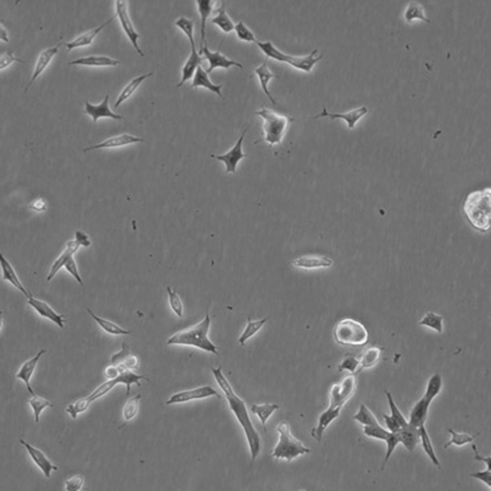 如果細(xì)胞密度達(dá)80%-90%,即可進(jìn)行傳代培養(yǎng)。1. 棄去培養(yǎng)上清,用不含鈣、鎂離子的PBS潤(rùn)洗細(xì)胞1-2次。2. 加2ml消化液(0.25%Trypsin-0.53mM EDTA)于培養(yǎng)瓶中,置于37℃培養(yǎng)箱中消化1-2分鐘,然后在顯微鏡下觀察細(xì)胞消化情況,若細(xì)胞大部分變圓并脫落,迅速拿回操作臺(tái),輕敲幾下培養(yǎng)瓶后加少量培養(yǎng)基終止消化。3. 按6-8ml/瓶補(bǔ)加培養(yǎng)基,輕輕打勻后吸出,在1000RPM條件下離心4分鐘,棄去上清液,補(bǔ)加1-2mL培養(yǎng)液后吹勻。4. 將細(xì)胞懸液按1:2到1:5的比例分到新的含8ml培養(yǎng)基的新皿中或者瓶中。 |