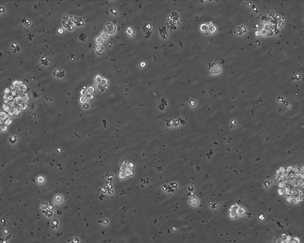 如果細胞密度達80%-90%,即可進行傳代培養。1. 棄去培養上清,用不含鈣、鎂離子的PBS潤洗細胞1-2次。2. 加2ml消化液(0.25%Trypsin-0.53mM EDTA)于培養瓶中,置于37℃培養箱中消化1-2分鐘,然后在顯微鏡下觀察細胞消化情況,若細胞大部分變圓并脫落,迅速拿回操作臺,輕敲幾下培養瓶后加少量培養基終止消化。3. 按6-8ml/瓶補加培養基,輕輕打勻后吸出,在1000RPM條件下離心4分鐘,棄去上清液,補加1-2mL培養液后吹勻。4. 將細胞懸液按1:2到1:5的比例分到新的含8ml培養基的新皿中或者瓶中 |