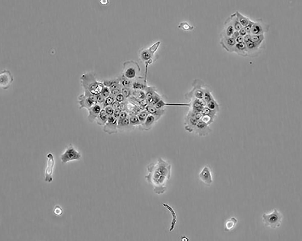 如果細(xì)胞密度達(dá)80%-90%,即可進(jìn)行傳代培養(yǎng)。1. 棄去培養(yǎng)上清,用不含鈣、鎂離子的PBS潤洗細(xì)胞1-2次。2. 加2ml消化液(0.25%Trypsin-0.53mM EDTA)于培養(yǎng)瓶中,置于37℃培養(yǎng)箱中消化1-2分鐘,然后在顯微鏡下觀察細(xì)胞消化情況,若細(xì)胞大部分變圓并脫落,迅速拿回操作臺(tái),輕敲幾下培養(yǎng)瓶后加少量培養(yǎng)基終止消化。3. 按6-8ml/瓶補(bǔ)加培養(yǎng)基,輕輕打勻后吸出,在1000RPM條件下離心4分鐘,棄去上清液,補(bǔ)加1-2mL培養(yǎng)液后吹勻。4. 將細(xì)胞懸液按1:2到1:5的比例分到新的含8ml培養(yǎng)基的新皿中或者瓶中 |