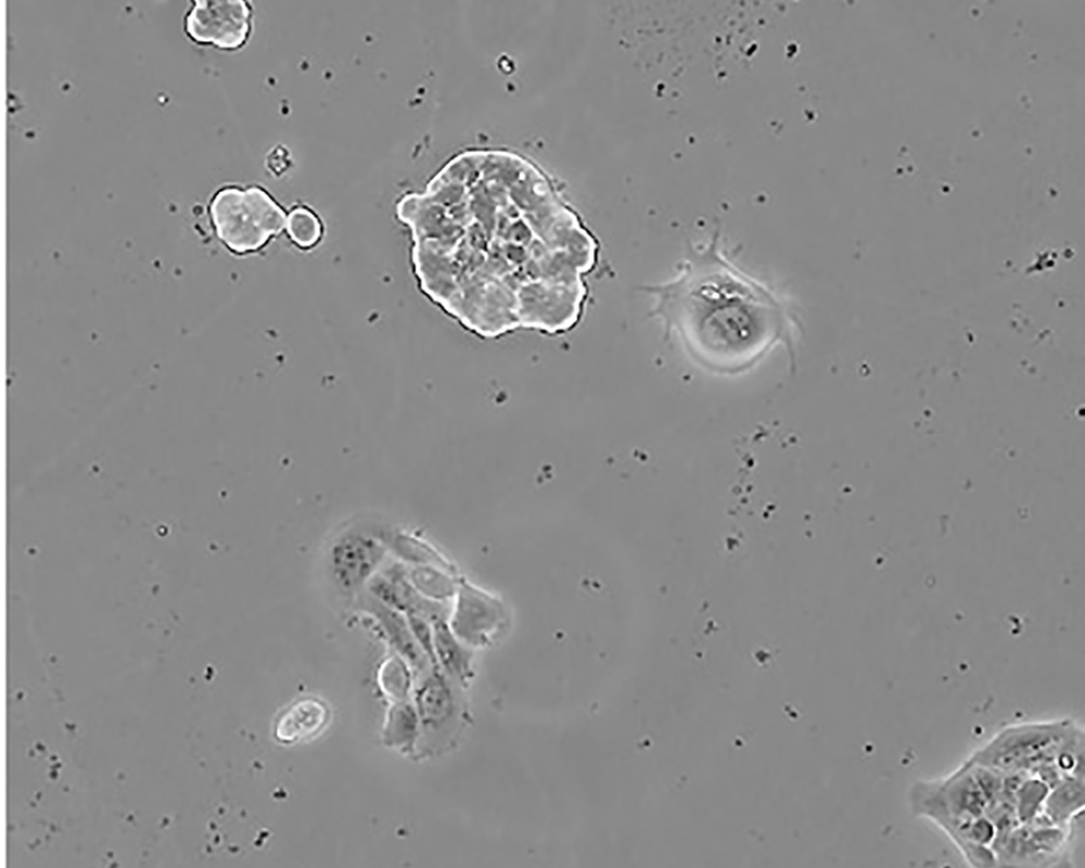 :待細胞生長狀態(tài)良好時,可進行細胞凍存。下面T25瓶為例;1.細胞凍存時,棄去培養(yǎng)基后,PBS清洗瓶底1-2次后加入1ml胰酶,細胞變圓脫落后,加入2ml完全培養(yǎng)基終止消化,可使用血球計數(shù)板計數(shù)。2.1000RPM離心5分鐘去掉上清。用血清重懸浮,加DMSO至最終濃度為10%。加入DMSO后迅速混勻,按每1ml的數(shù)量分配到凍存管中,注意凍存管做好標識。本公司按每個凍存管細胞數(shù)目大于1X106個細胞凍存。3.將凍存管置于程序降溫盒中,放入-80度冰箱,至少2個小時以后轉(zhuǎn)入液氮灌儲存。記錄凍存管位置以便下次拿取。 |
